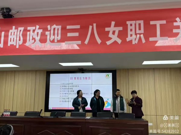 為慶祝2025年“三八”婦女節(jié),關(guān)愛女職工身心健康,3月7日上午,唐山市分公司工會舉辦了“伊路同行——女職工關(guān)愛大講堂”心理健康講座。來自市分公司、市寄遞事業(yè)部各單位的130余名女職工參加,本次活動特邀唐山市心理咨詢師協(xié)會會長、國家二級心理咨詢師于素靜老師,為女職工們帶來了一場主題為“壓力管理與健康促進”的精彩講座。