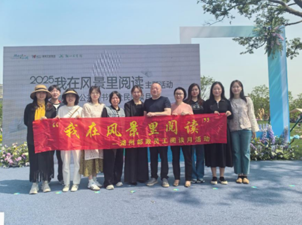 4月23日,正值世界讀書日,湖州市公共圖書館全民閱讀月啟動儀式在風景如畫的小梅港體育公園隆重舉行,湖州市郵政工會共派出20名員工積極參與此次活動。