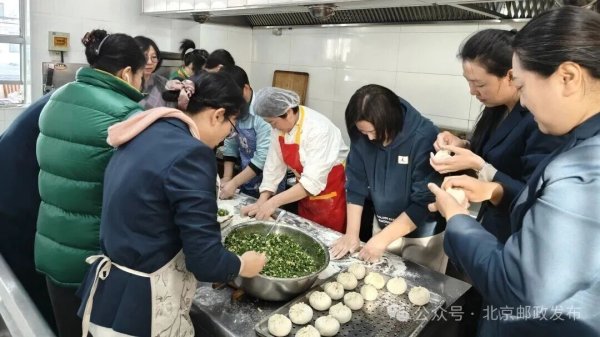 密云區(qū)分公司機關(guān)食堂變身“暖心廚房”,領(lǐng)導(dǎo)班子與職工共同動手,包餃子、包包子,嚴控食材安全,現(xiàn)場氣氛熱烈?;顒庸舶鰞汕в鄠€餃子,并由專人專車在午餐時段送至各投遞站點,確保員工吃上熱乎飯菜。