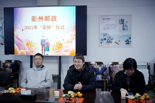 12月25日下午,衢州市分公司為2025年下半退休員工舉辦了榮休儀式,衢州市分公司黨委書(shū)記、總經(jīng)理詹旭波、工會(huì)副主席戚偉芬以及退休員工所在部門(mén)負(fù)責(zé)人參加。