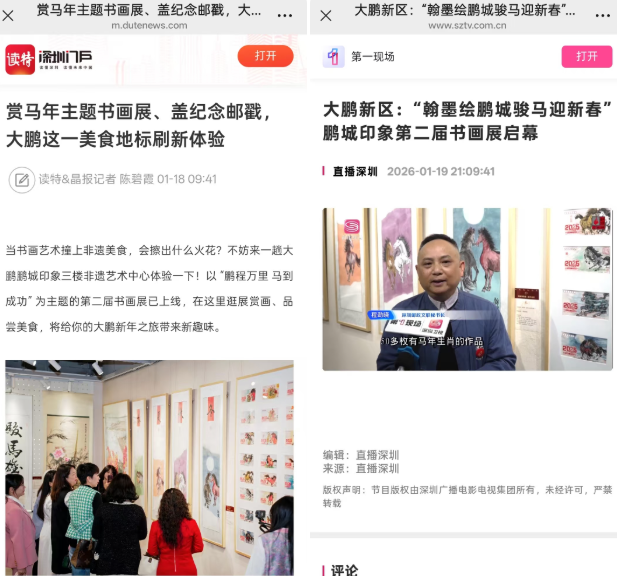1月15日上午,備受矚目的深圳鵬城印象第二屆書畫展在大鵬新區(qū)鵬城印象文化藝術(shù)中心盛大啟幕。這次展覽由深圳郵政文聯(lián)指導(dǎo)、深圳郵政工會聯(lián)合鵬城印象非遺藝術(shù)中心主辦,以“鵬程萬里·馬到成功”為核心主題,延續(xù)首屆展會的文化熱度,為鵬城市民與書畫愛好者獻上一場年味濃郁、兼具藝術(shù)質(zhì)感與吉祥寓意的文化盛宴。