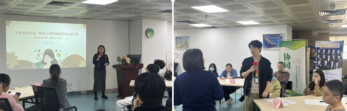 1月16日,11183廣州中心工會(huì)成功舉辦以“從緊張到從容:職場(chǎng)人的呼吸減壓與認(rèn)知升級(jí)”為主題的心理團(tuán)輔課,旨在幫助員工科學(xué)應(yīng)對(duì)職場(chǎng)壓力,提升心理韌性與情緒調(diào)節(jié)能力。