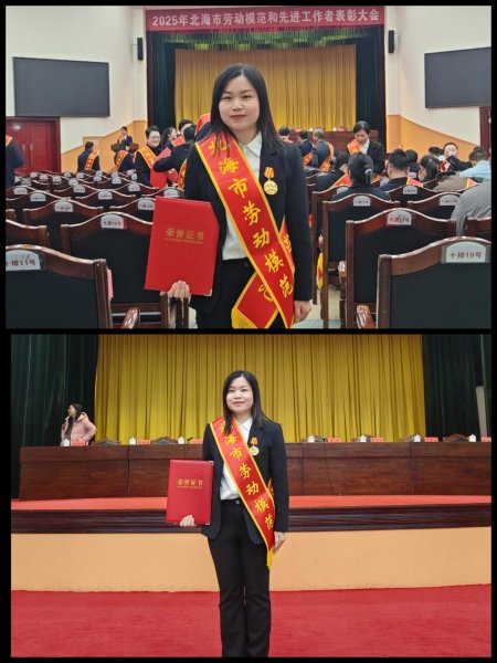 會(huì)上,羅英曉同志被授予2025年“北海市勞動(dòng)模范”榮譽(yù)稱號(hào),市委、市政府領(lǐng)導(dǎo)為其頒發(fā)榮譽(yù)證書(shū)和獎(jiǎng)牌,對(duì)其長(zhǎng)期以來(lái)扎根郵政一線、深耕郵政普惠金融服務(wù)、助力地方發(fā)展的突出業(yè)績(jī)給予充分肯定。