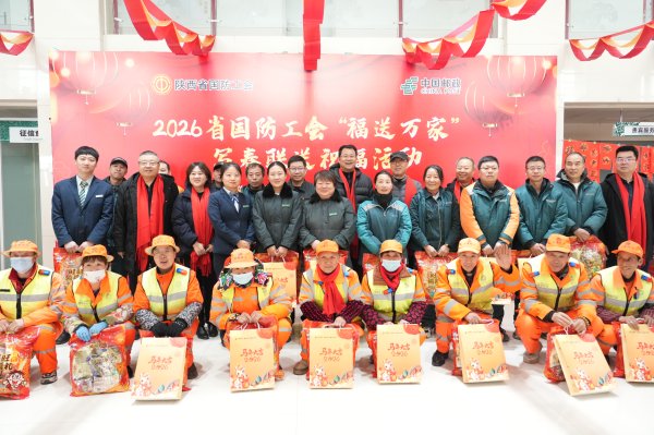 1月26日,陜西省國防工會2026年“福送萬家”活動在西安小寨郵政營業(yè)廳開展。此次活動由陜西省國防工會主辦、中國郵政集團(tuán)有限公司西安市分公司承辦,值此新春佳節(jié)來臨之際,向堅守一線的郵政員工和戶外勞動工作者致以節(jié)日問候與祝福。