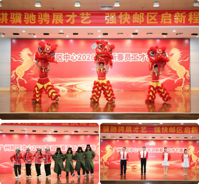 整場(chǎng)活動(dòng)在全體演出人員與觀眾的溫馨大合影中圓滿落幕。這次活動(dòng)不僅是一場(chǎng)才藝比拼與新春聯(lián)歡,更是一次團(tuán)隊(duì)凝聚力與職工文化建設(shè)的生動(dòng)展示。它充分彰顯了廣州郵區(qū)中心全體員工團(tuán)結(jié)奮進(jìn)、樂(lè)觀向上的精神面貌,也為迎接充滿希望的2026年注入了澎湃動(dòng)力與堅(jiān)定信心。新的一年,廣州郵區(qū)中心全體員工必將如駿馬奔騰、創(chuàng)勢(shì)篤行,奮力譜寫“強(qiáng)快郵區(qū)”高質(zhì)量發(fā)展的嶄新篇章。