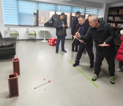 本次活動以“情暖職工·樂享新春”為主題,設(shè)置投壺、投骰子、飛鏢、翻瓶挑戰(zhàn)四大趣味環(huán)節(jié),兼顧娛樂性與互動性,每個游戲區(qū)域均明確張貼規(guī)則與積分說明,確保活動公平有序開展?;顒悠陂g,圖書室里暖意融融、熱鬧非凡,職工們主動參與各個游戲項目,現(xiàn)場掌聲、歡呼聲此起彼伏,處處洋溢著喜慶祥和的節(jié)日氣息。從精準投箭到幸運擲骰,從精準飛鏢到翻轉(zhuǎn)挑戰(zhàn),職工們在參與中積累積分,在兌換中收獲喜悅,每一份獎品都承載著工會對職工的新春祝福與深切關(guān)懷。