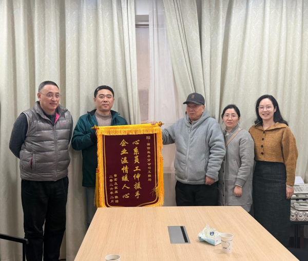 近日,職工家屬特意為分公司送來錦旗,以最莊重的方式表達(dá)對(duì)分公司及職工們的深切謝意,錦旗上“心系員工伸援手,企業(yè)溫情暖人心”的真摯話語,既承載著家屬滿滿的感恩之情,也彰顯了分公司與職工之間親如一家、守望相助的深厚情誼。
