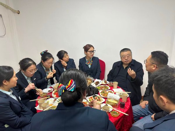 在農村網點鳴犢支局職工小家,胡康總經理一行察看了職工小家的宿舍和后院,著重了解農村支局網點員工生活保障情況。在小家食堂里,胡康總經理和史增龍副總經理帶來了豐富的食材和飲料,為支局的職工準備了熱氣騰騰的火鍋。席間和職工共進午餐深入交流日常工作和生活情況、共賀新春。胡康總經理向辛勤堅守崗位的一線員工致以誠摯的問候,借紅火的火鍋,寄望支局發(fā)展和職工的生活都蒸蒸日上、更上一層樓。