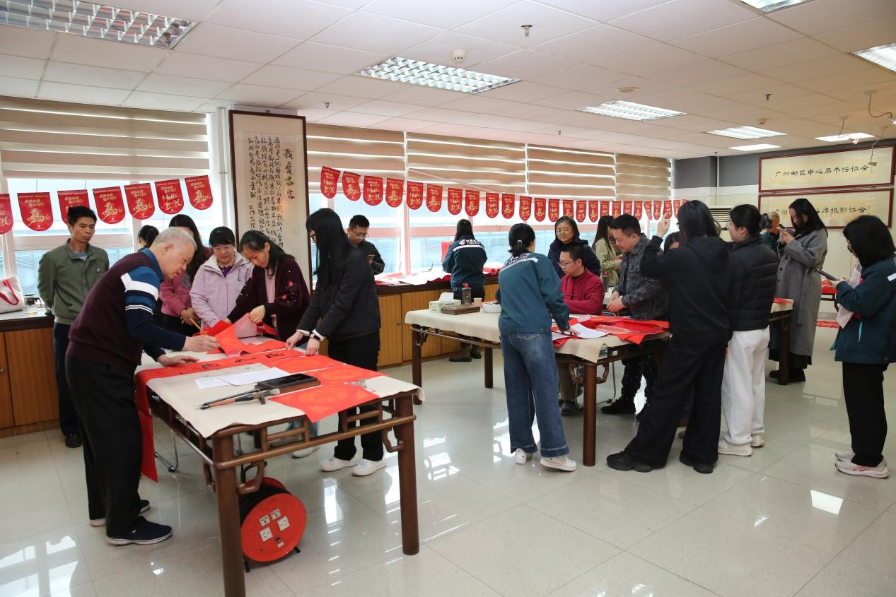 紅紙鋪展,翰墨盈香。2月9日上午,廣州郵區(qū)中心工會組織開展“郵區(qū)送?!ご郝?lián)添彩”2026年揮春活動,特邀退休老領(lǐng)導(dǎo)鄭李泰書記與書畫愛好者們一同揮毫潑墨,現(xiàn)場書寫春聯(lián)、福字,為全體員工送上馬年新春祝福,四十余名員工踴躍參與,以傳統(tǒng)筆墨寄情,共迎新春佳節(jié)。