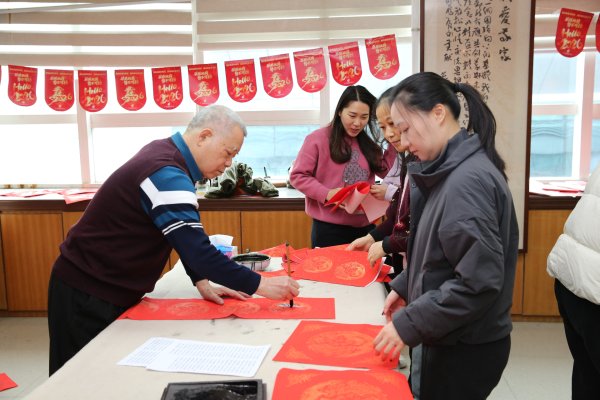 這次活動的一大亮點,是退休老領(lǐng)導(dǎo)鄭李泰書記的蒞臨參與。鄭書記精神飽滿、興致盎然,親手執(zhí)筆揮毫,與書畫愛好者們并肩書寫新春祝福,每一筆都飽含深情,將濃濃的關(guān)懷與期許融入筆端。書寫間隙,他還親切與在場員工交談,關(guān)切詢問大家的工作近況與新年心愿,平易近人的態(tài)度、真摯暖心的關(guān)懷,讓現(xiàn)場氛圍愈發(fā)暖意融融。他親手書寫的春聯(lián)與福字,成為員工們爭相收藏的珍貴“墨寶”。