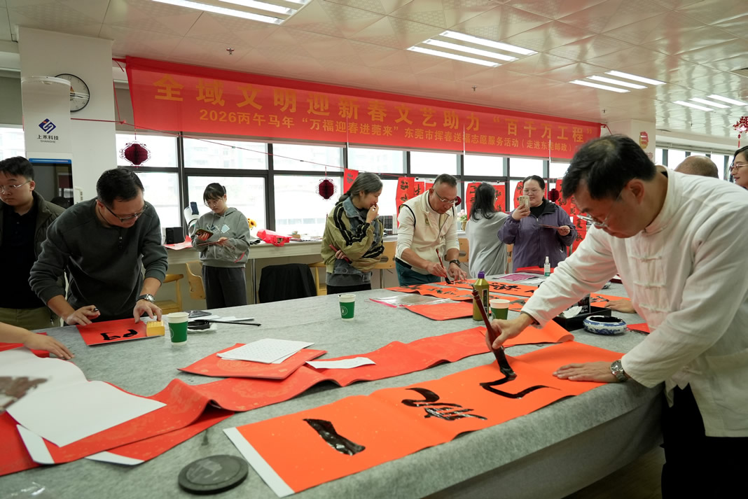茶山、城區(qū)、石碣、石龍等各分會也同步開展寫春聯(lián)、送福字迎新春活動,紛紛邀請書法功底扎實的老師現(xiàn)場創(chuàng)作,書寫馬年祝福、傳遞郵政溫情,活動氛圍熱烈,深受廣大職工喜愛與好評。