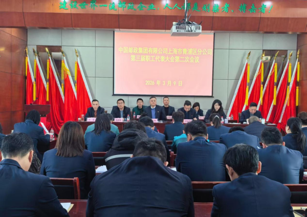 2026年3月9日,中國郵政集團(tuán)有限公司上海市青浦區(qū)分公司第三屆職工代表大會第二次會議召開。本次大會以全面貫徹落實(shí)黨的二十大、黨的二十屆歷次全會精神,認(rèn)真落實(shí)以職工代表大會為基本形式的企業(yè)民主管理制度,總結(jié)2025年工作,部署2026年任務(wù)。團(tuán)結(jié)動員廣大郵政干部職工,為開創(chuàng)青浦郵政高質(zhì)量發(fā)展而努力奮斗。