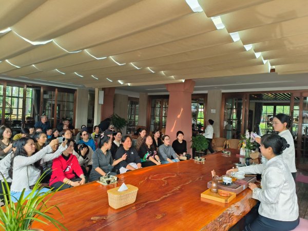 活動(dòng)伊始,特別安排了泡茶禮儀講解環(huán)節(jié)。講解人員結(jié)合臨滄本地茶文化特色,從凈手溫杯、賞茶投茶、懸壺高沖,到鳳凰三點(diǎn)頭、雙手奉茶、扣手致謝等完整流程,細(xì)致演示了泡茶的標(biāo)準(zhǔn)動(dòng)作與禮儀規(guī)范,深入解讀了“和、敬、清、寂”的茶禮儀文化,引導(dǎo)大家在一招一式中感受中華傳統(tǒng)文化的韻味,在茶香氤氳中舒緩身心、沉淀心境,為本次春游活動(dòng)增添了濃厚的文化氣息。