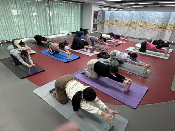 3月13日,瑜伽小組首次開課,職工們暫別忙碌,伴著舒緩音樂靜享療愈時光。在專業(yè)老師指導下,大家從冥想呼吸切入,開展肩頸拉伸、基礎體式練習,老師逐一對動作細節(jié)耐心糾正,眾人在一呼一吸間舒 展身心,有效緩解伏案工作的身體疲憊和職場壓力,實現身心雙重放松。