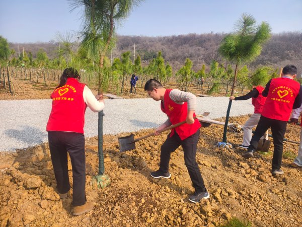 活動現(xiàn)場,大家三兩一組、分工協(xié)作,挖坑、立樹、填土、夯實、封坑、澆水,一氣呵成,一棵棵小樹落地生根。大家用汗水為春日大地增添一抹盎然新綠,展現(xiàn)出郵政隊伍團(tuán)結(jié)協(xié)作、奮勇爭先的良好風(fēng)貌。