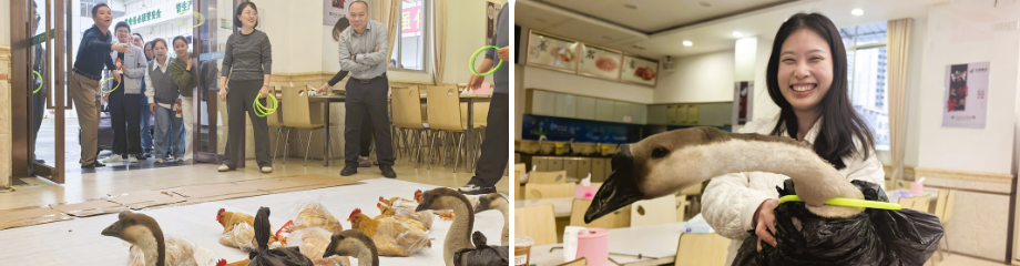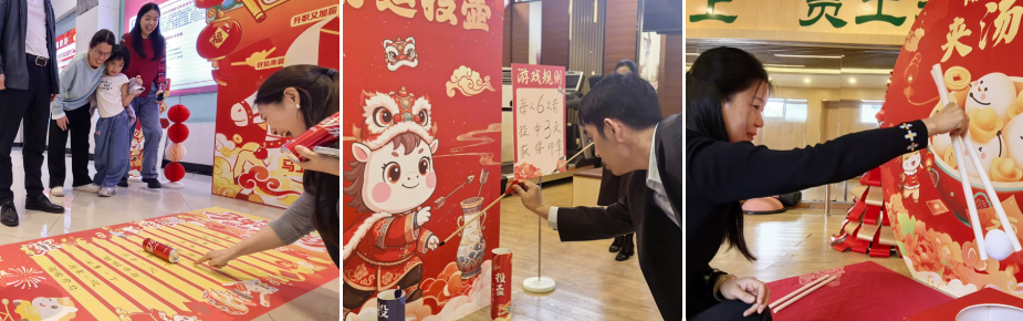 活動于當日16:00準時開啟,員工們有序簽到,領取集章卡與精美小禮品。熱鬧的場景、喜慶的氛圍,讓整個院區(qū)處處洋溢著輕松愉悅的氣息。這次游園活動精心設置好運投壺、趣味夾物、滾滾樂、歡樂套大鵝四大互動項目,兼顧趣味性與參與感,員工手持集章卡踴躍闖關,現(xiàn)場氣氛熱烈非凡。其中,歡樂套大鵝環(huán)節(jié)人氣最旺,大家凝神聚力、精準拋圈,每一次成功命中都引來陣陣歡呼,每位參與者都盡興體驗、挑戰(zhàn)自我,在趣味比拼中收獲滿滿喜悅。